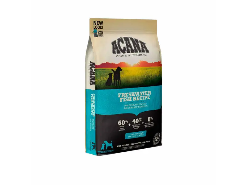 ACANA Freshwater Fish es una fórmula de calidad ultra-premium diseñada para perros de todas las razas y etapas de vida. Inspirada en las aguas frías de los lagos del norte, esta receta destaca por incluir un 60% de ingredientes de origen animal de alta calidad, combinando trucha arcoíris, siluro azul y perca amarilla.