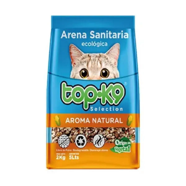 La arena Top K9 Ecológica es una opción biodegradable diseñada para ofrecer una absorción excepcional sin el uso de bentonita o arcillas tradicionales. Al ser de origen vegetal, es una alternativa más saludable para gatos con alergias y para dueños que prefieren productos amigables con el medio ambiente.