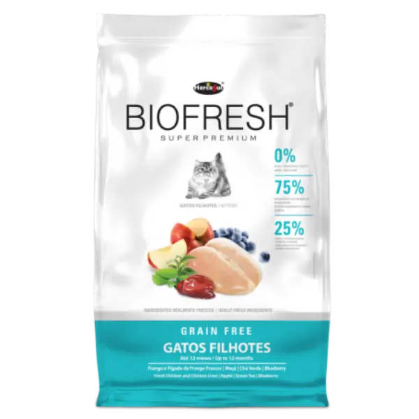 Biofresh Kitten está formulado para satisfacer las altas demandas nutricionales de los gatos en crecimiento (hasta los 12 meses) y de gatas en lactancia. Su receta destaca por el uso de carnes frescas y vegetales reales, ofreciendo una dieta biológicamente adecuada sin granos transgénicos ni conservantes artificiales.