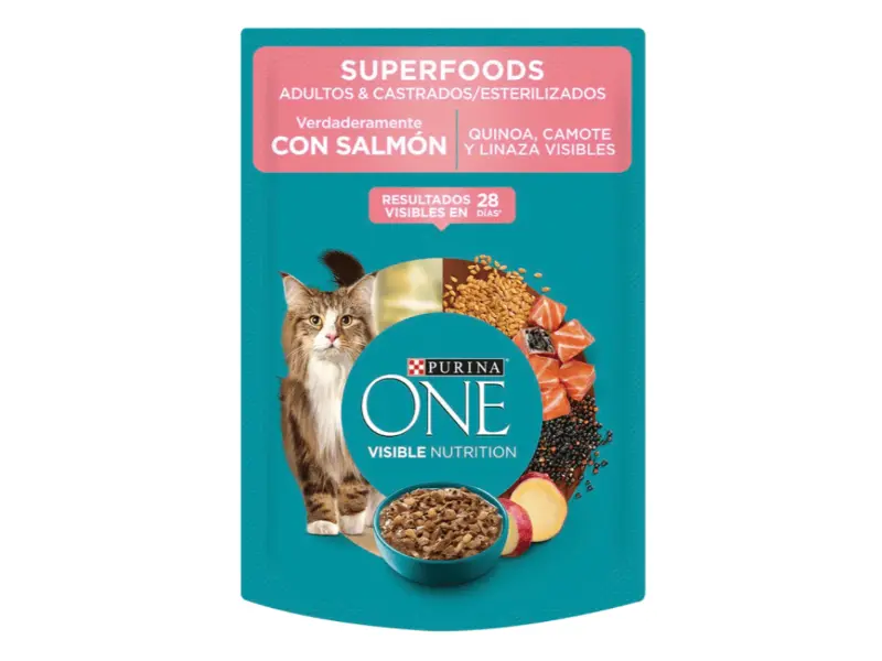 El Pouch Purina ONE de Salmón es un alimento húmedo de alta calidad que combina una nutrición completa con un sabor irresistible. Formulado por veterinarios y nutricionistas, este sobre de trozos tiernos en salsa está diseñado para fortalecer los sistemas de defensa naturales de tu gato mientras deleita su paladar.