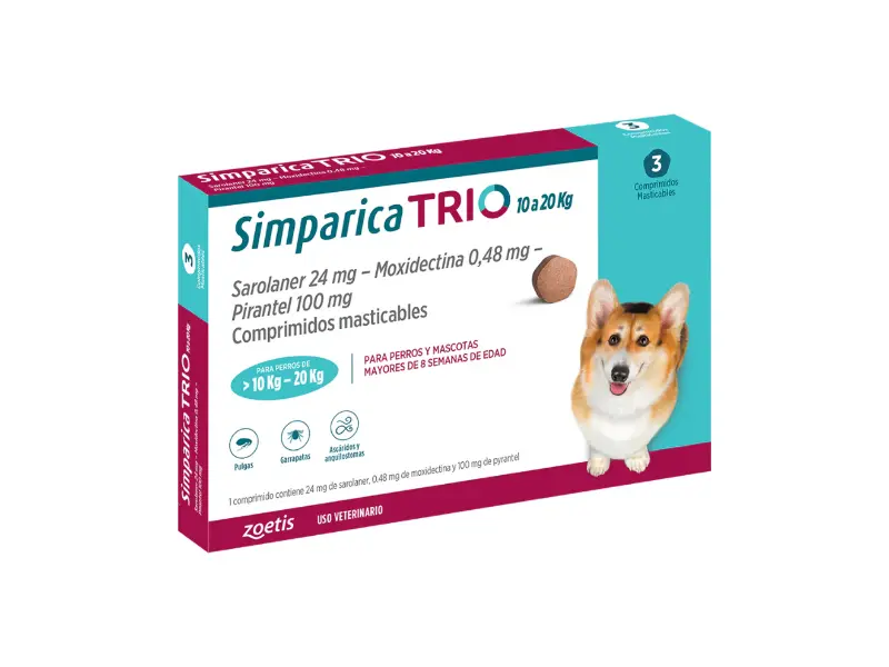 Simparica Trio: 10,1 a 20 kg (Caja 3 Comprimidos) 🛡️🐕✨