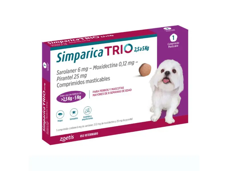 Simparica Trio: 2,5 a 5 kg (1 Comprimido) 🛡️🐶